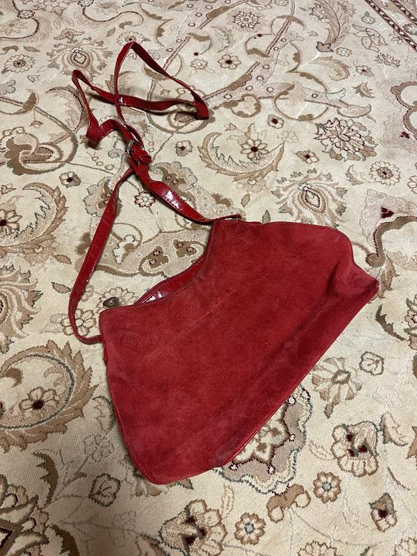 Сумка фирменная красная натуральный замш через плечо, ремешок регулируется
