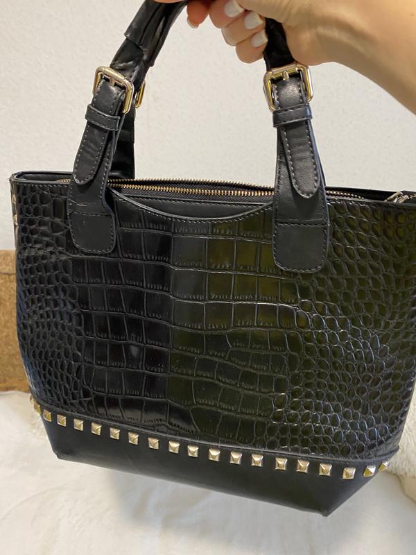 Удобная и красивая сумка из черной экокожи. Фурнитура золото без дефектов. Внутри большое отделение и кармашек на молнии.
