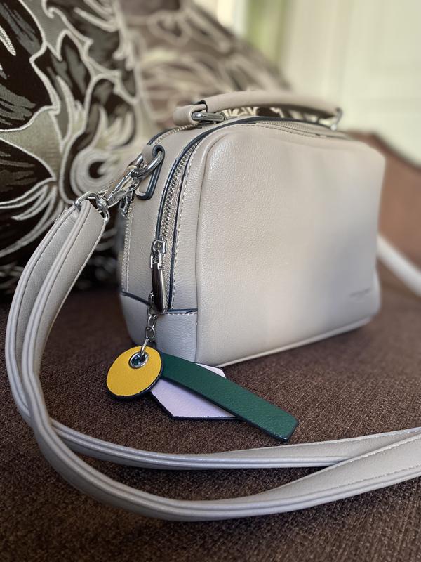Сумка як нова, користувалась декілька разів. В сумці два відділення (з маленькими карманчиками) + боковий карман. Колір - беж. Ремінець регулюється.