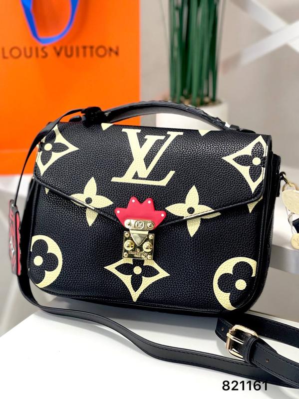 821161 Сумка Лу з брелоком 3 відділи Ціна: 1500 грн Забарвлення: чорна ремінець регулюється в наявності фурнітура з логотипами, всередині та зовні ЛОГО Матеріал: екоШкіра – люкс якість! Розміри: 24/17 Брелок у комплекті✅