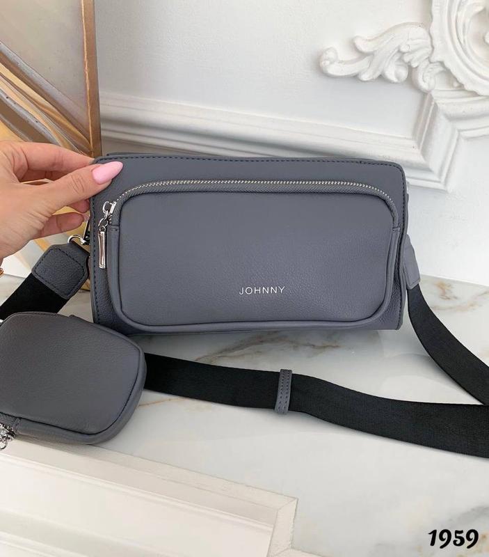 Код 1959 Сумочка на широкому ремені ! У відмінній якості ! ————————————————— —————————————————— ✅Материал - екокожа Сумочка на один загальний відділ . Всередині та зовні додаткові великі кишені на молніі . Плечовий ремінь регулюється . В комплекті гаманець на карабіні . Розмір 25 * 14,5 см