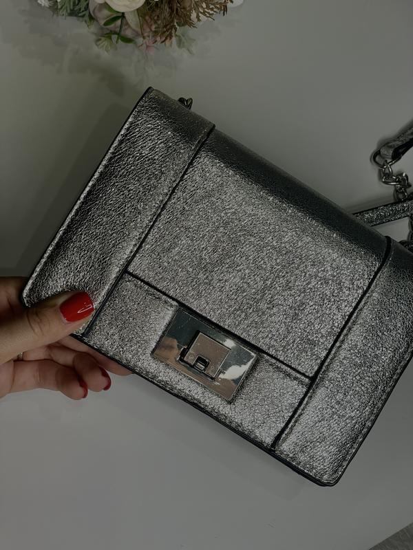 Яскрава сумка , має два ввіділення , та один гаманець на блискавці. Закривається на металеву заклепку . Розміри - 14х19