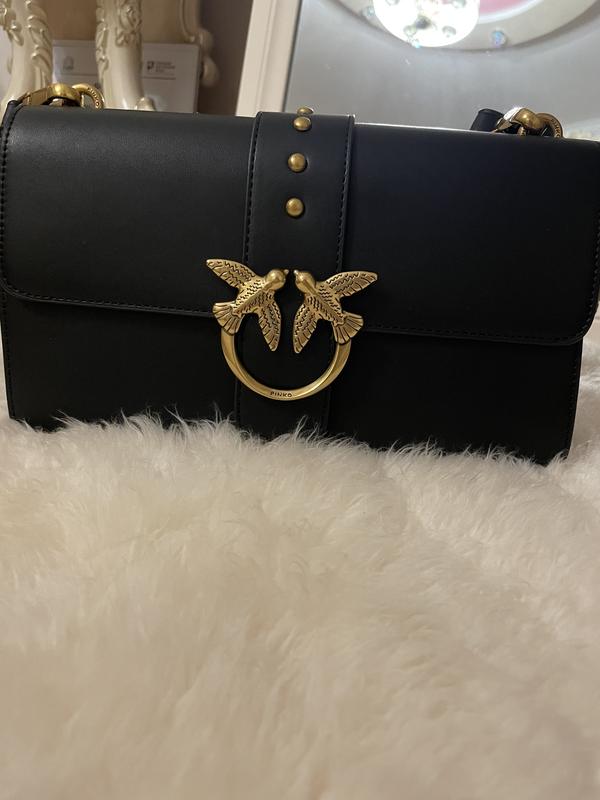 Класична чорна сумочка Pinko Tiamo Tiamo - я тебе люблю Сумочка в екошкірI в люкс якості(їх часто за шкіру видають в інших магазинах) ,чіткі логотипи на металі,високоякісна фурнітура, брендований чохол,сертілого і qr кодом Розмір: 27см*17см Nfc після считування переправляє на офіційний сайт Pinko