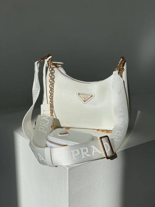 👜 Prada Re-Edition 2005 White Saffiano Leather Bag (Арт: 05042) 💵 Ціна: 1790 грн 📐 Розмір: 28 х 16 х 7 см 🧵 Матеріал: Еко Шкіра 🔎 Опис: Сумка виготовлена ​​з білої еко шкіри. Усередині одне суцільне відділення з брендовим металевим логотипом. Підкладка всередині сумки із чорного текстилю з фірмовими написами. Ремінець із якісного текстилю, з фірмовими написами, регульованої довжини. На ремінці є також невелика кишенька для дрібниці. Також є золотий ланцюжок на карабінах. Комплектується у брендованій коробці та папері (за додаткову плату можна придбати фірмовий пакет, пильовик та документи).