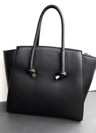 Продам чорну жіночу сумку бренду Mohito з золотистою фурнітурою. Розміри: Висота 29 см Ширина по низу 30 см, по найширшим точкам 40 см Товщина 13 см Стан майже ідеальний, дещо тріснули ручки (див. останнє фото), але це практично непомітно.
