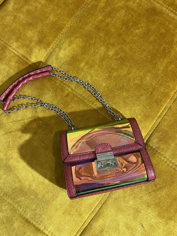 Сумка від David Jones, дуже мила та стильна. Є нюанс, на фото показала. Можна носити двома способами, з гаманцем всередині або без нього, тоді вона просвічується, але не повністю. Розмір - ширина 18, висота 15, вмісткість 9 см Довжина ручок 32 см