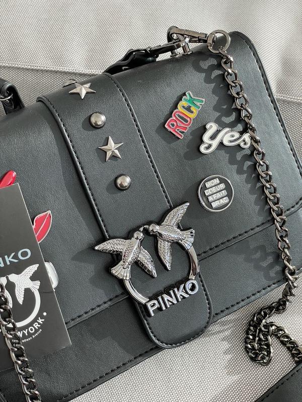 👜 Pinko Classic Love Bag Icon Enamel Pin (Арт: 08003) 💵 Ціна: 1490 грн 📐 Розмір: 23 х 16 х 7 см 🧵 Матеріал: Еко Шкіра 🔎 Опис: Сумка виготовлена з гладкої еко шкіри з емальованими шпильками. Застібка на двох магнітах. Усередині одне суцільне відділення з маленькою шкіряною кишенькою та тисненням Пінко. Матеріал внутрішньої підкладки – червоний текстиль. Ручка сумки на карабінах, зі шкіри та металевих сріблястих зірок, довжина 53 сантиметри. Ремінець також на карабінах, з важкого ланцюжка і шкіряної ручки з тисненням Пінко. Комплектуються у не брендованих коробках.