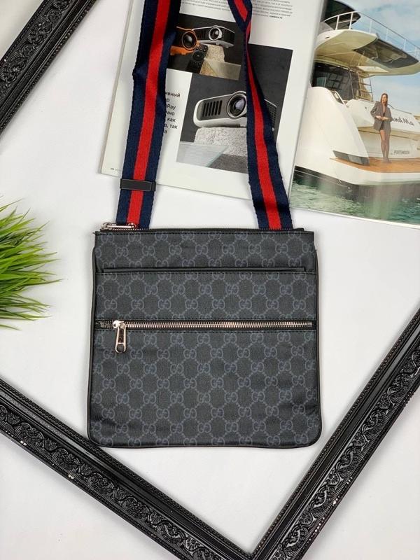 Сумка-планшетка Gucci GG grey Матеріал : Екошкіра Розміри: 24*25 Сірий колір Характеристика моделі: 1 зовнішня кишеня спереду та 1 велике відділення. Ремінь не знімний, що регулюється в стилі легендарного багажу будинку Louis Vuitton, плечова накладка з екошкіри, фурнітура кольору паладію.