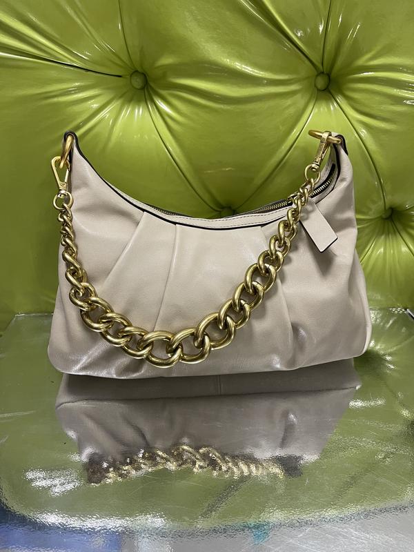 Склад: шкіра. Колір: молочний Одна знімна ручка довжиною 25см. Одна знімна регульована ручка - 60см. Розмір: 19*32*6