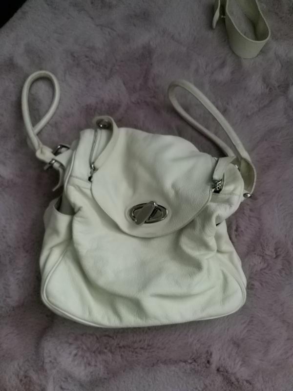 Крутейшая сумка ,цвет пломбир..(как сливочное мороженное😊Шикарного качества кожа(мягкая,не грубая),вместительность зашкаливает, много карманов)размер средний-ширина 33,высота 30,дно19,ручки 28.длинная ручка 44., отстёгивается )есть потёртости ,в носке незаметны будут.в одном месте почистить нужно.сумка прослужит ещё очень и очень долго и шикарно смотрится,подойдёт под всё.у меня уже лежит скучает.Отправка Новой почтой после оплаты на карту