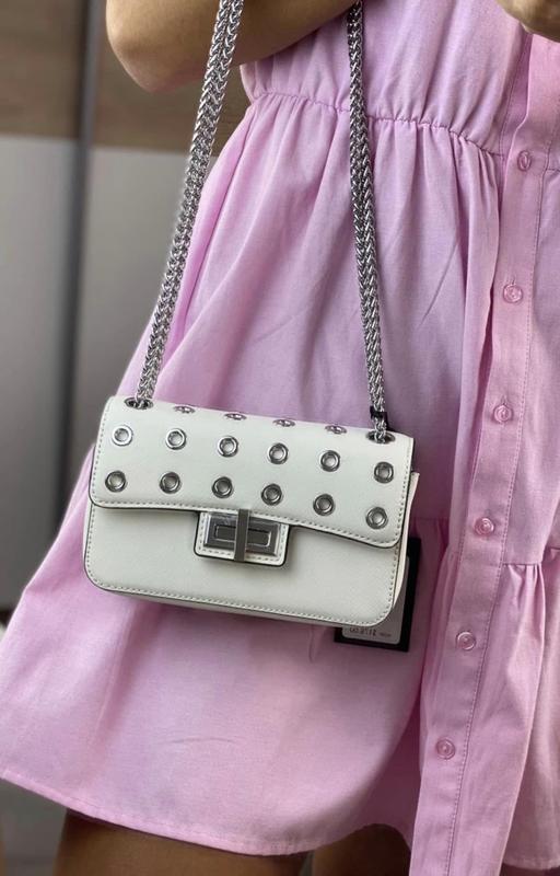 Сумочка біла шкіряна DKNY. Цепок дозволяє носити у двох різних положеннях. Donna Karan New York, гарне пакування, чудово на подарунок.