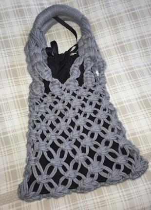 Ручна робота! Колір сплетенної сумки - сірий. Змінний чорний мішечок на зав'язці. Дуже міцні ручки