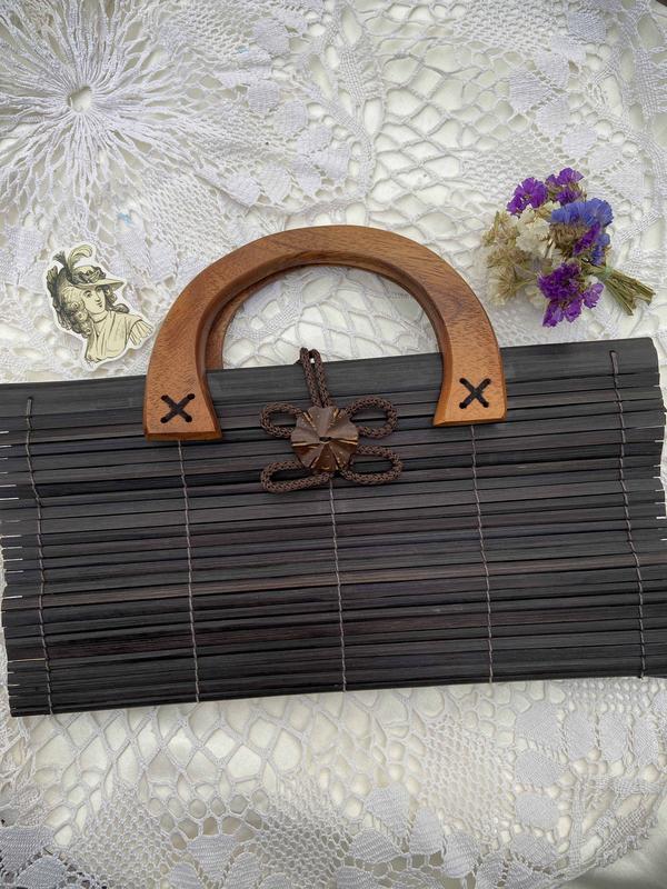 Гарна сумочка з бамбуку. Стан гарний, є невеличкий нюанс (дивіться на фото). Ширина – 16 см Довжина – 29 см