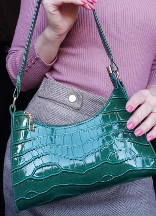 🔶️ Трендова зелена сумочка Багет 🔶️ 🔸️ PU глянцева шкіра з тисненням 🔸️ шир 24 × вис 15,5 см 🔸️ ручка 53 см 🔸️ також в наявності шоколадні, чорні, сірі, білі, бежеві, пісочні
