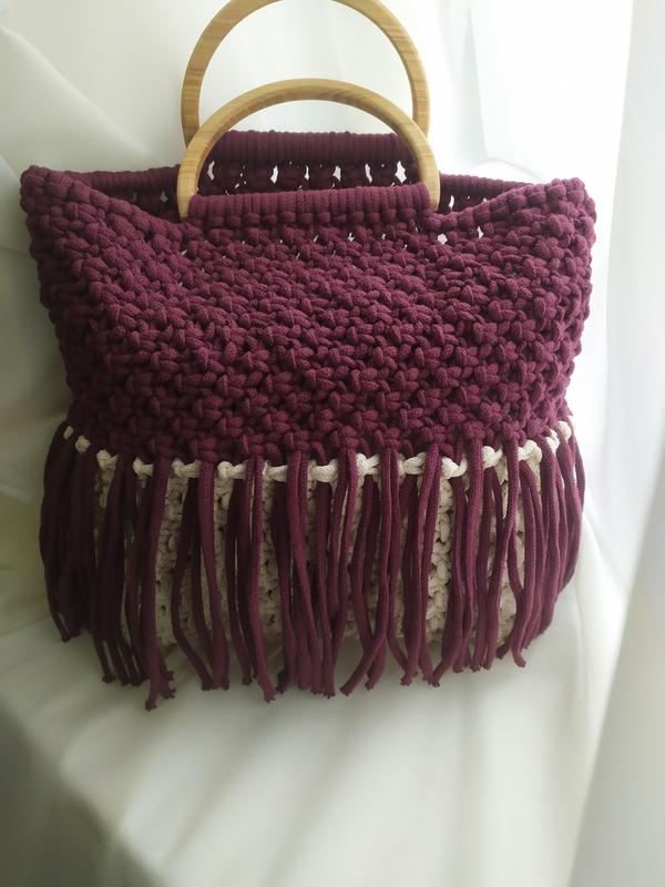 сумка виконана і техніці макраме,натуральний бавовняний шнур. можливо зробити в іншому кольорі, розмірі з урахуванням всіх ваших побажань! будьте стильними!)