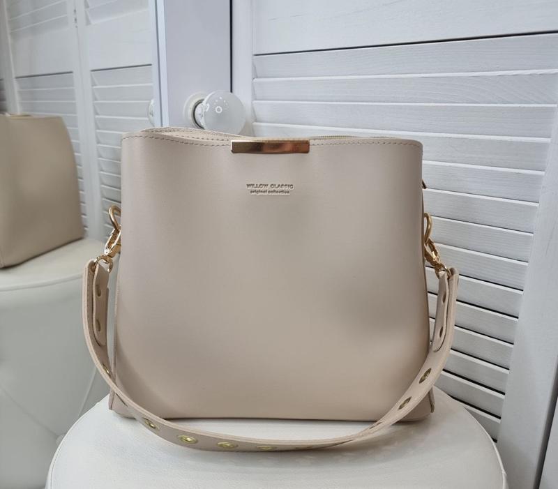 ✅ Гарна, стильна модель на 3 відділи з ЕКО шкіри‼️✅ ФУРНІТУРА: золото РОЗМІРИ: Ширина по низу - 27 см, висота - 22,5 см, дно - 11 см + зйомна коротка ручка ( довжина 48 см ) и зйомними довгий ремінець МАТЕРІАЛ: ЕКО шкіра., підкладка - щільна тканина СКЛАД: Три відділення, середній відділ зверху закрівається на блискавку, а два других відділи - на кнопку-магніт. В середині є відкрита кишеня и кишеня на бліскавці.