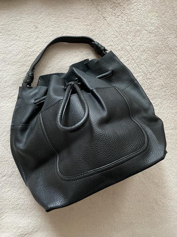 Сумка мішечок у дуже гарному стані. Є невеликий недолік, місцями злущився бортик по верху, в ціні врахувала