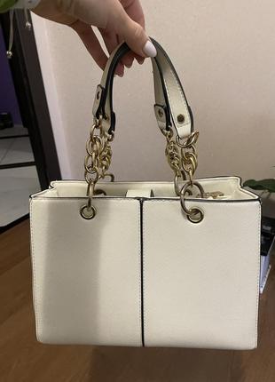 Молочна сумка від німецького бренду Orsay. Дуже вмістка, має три відділи, та додаткові кишені в середині. Приємна текстура сафяно. Фурнітура хорошому стані, не окреслилася, виглядає як нова