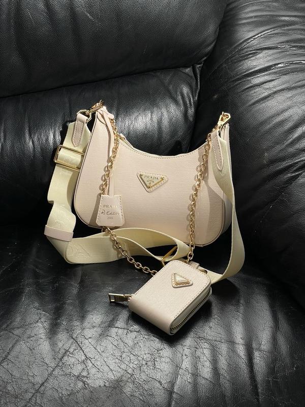 👜 Prada Re-Edition 2005 Cream Saffiano Leather Bag (Арт: 05049) 💵 1890 грн 📐 Розмір: 28 х 16 х 7 см 🧵 Матеріал: Еко Шкіра 🔎 Опис: Сумка виготовлена з бежевої еко шкіри. Усередині одне суцільне відділення з брендовим металевим логотипом. Підкладка всередині сумки із чорного текстилю з фірмовими написами. Ремінець із якісного текстилю, з фірмовими написами, регульованої довжини. На ремінці є також невелика кишенька для дрібниці. Також є золотий ланцюжок на карабінах. Комплектується у брендованій коробці та папері (за додаткову плату можна придбати фірмовий пакет, пильовик та документи). Для замовлення пишіть 💌 #prada