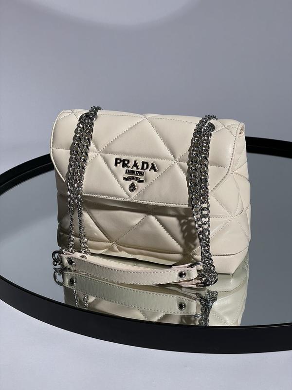 👜 Prada Nappa Spectrum Cream/Silver (Арт: 05046) 💵 1650 грн 📐 Розмір: 25 х 18 х 9 см 🧵 Матеріал: Еко Шкіра 🔎 Опис: Сумка виконана з гладкої екошкіри, з трикутним простроченням. Усередині два відділення, в одному з яких є невелика кишенька. Підкладка всередині сумки текстильна, з фірмовою нашивкою. Ремінець сумки на ланцюжках, з ручками із еко шкіри. Регулюється ремінець як під носіння в руці, так і через плече. Комплектується у брендованій коробці та папері (за додаткову плату можна придбати фірмовий пакет, пильовик та документи). Для замовлення пишіть 💌 #prada