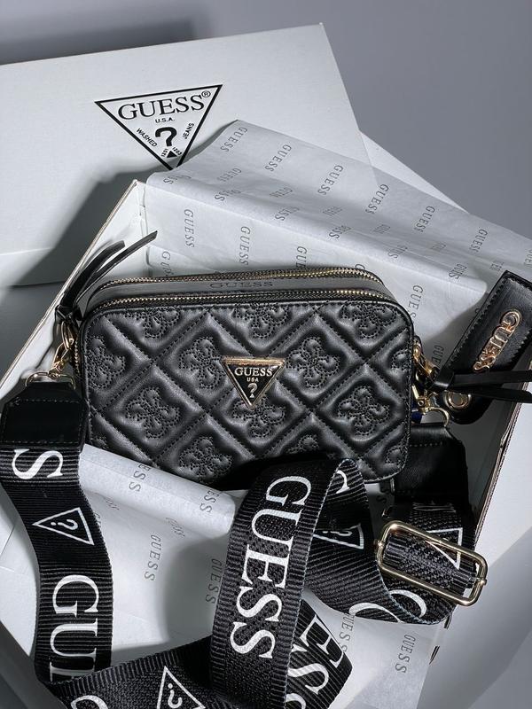 👜 Guess Zippy Snapshot Black (Арт: 17054) 💵 Ціна: 1450 грн 📐 Размер: 21 х 12.5 х 7 см 🧵 Материал: Еко Шкіра 🔎 Опис: Сумка виготовлена з чорної еко шкіри, прострочена. Усередині два невеликі відділення на блискавках. На задній стінці сумки є невелика кишенька. Підкладка всередині сумки із чорної еко шкіри. Брендований ремінець у комплекті регулюється від 63 до 105 сантиметрів. Комплектується у брендованій коробці та папері (за додаткову плату можна придбати документи, пильовик та фірмовий пакет).
