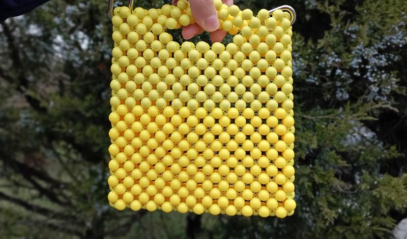 комбинированная сумочка из бусин, обратная сторона одно она желтая, есть фиксаторы под длинную ручку.