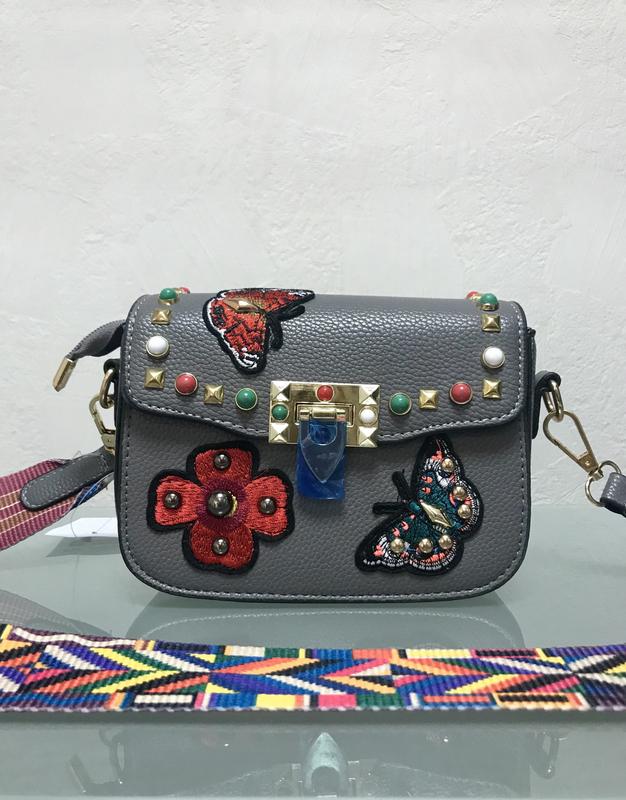 Сумка - клатч - модный, красивый молодежный аксессуар. Подробнее сайте Форма слегка прямоугольная . Ручка съемная из шикарной плотной текстильной ленты ярких цветов .Застежка тоже золотистый замочек . Цвет серый, эко кожа, по всей сумке яркие насыщенные аппликации , украшена разноцветными бусинами . Аксессуары - золотистый металл. Сумочка имеет одно основное отделение и два кармана . Имеется сертификат - паспорт соответствия. Размер: высота 11 см, ширина 17 , глубина 6 см. Очень современная модная и статусная . Она не просто украсит владелицу , но и укажет на тонкий вкус, идеально подчеркнет образ .Идеальный товар для настоящих ценителей качества и красоты. Эта сумочка станет отличной покупкой для себя или желанным подарком для дорогого человека .