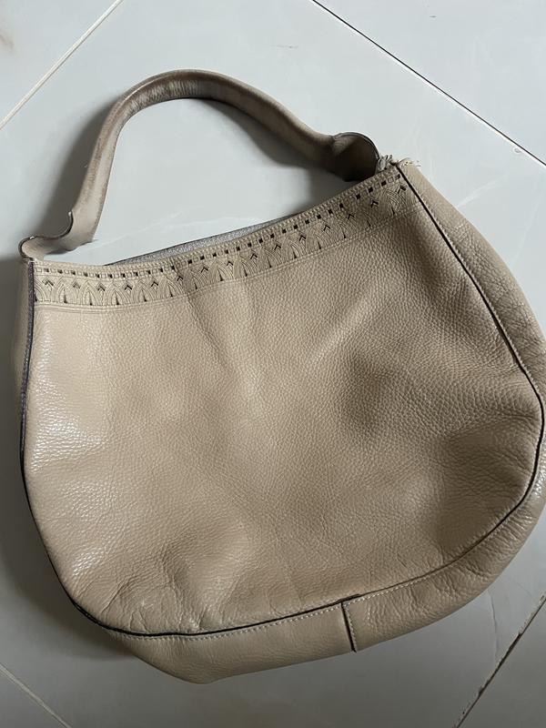 Кожаная сумка max Mara. будет выглядеть круто и удобно Цвет - бежевый Имеются нюансы, на фото все показала.но можно все поправить