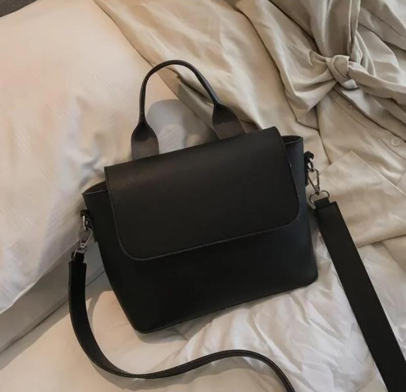 Городская женская сумочка из очень качественной эко-кожи, держащей форму. Одно внутреннее отделение и карман у стенки. Магнитная скрытая застежка, стильная имитация сумки без застежки. Подходит для ношения на плече и на руке. РАЗМЕР: Высота 19 см; Длина 24 см; Ширина основания 9 см; Плечевой ремешок 112 см. Цвет: черный Материал: гладкая эко-кожа Фурнитура: затемненное серебро Плечевой ремень: съемный, нерегулируемый Ручка: одиночная ДxШxВ: 240x90x190 мм