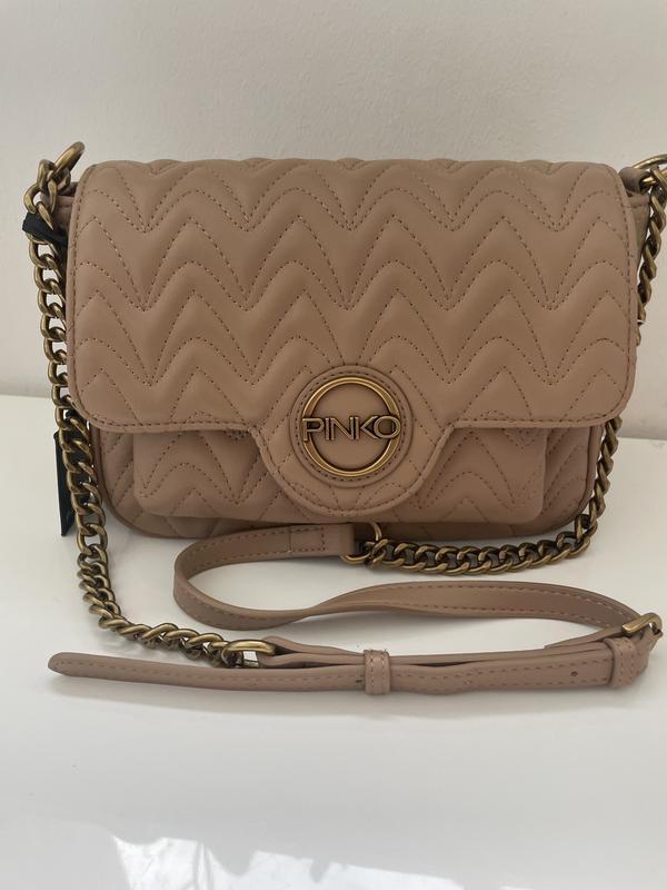 Сумка Pinko в универсальном бежевом цвете на длинном ремешке. Оригинальный! Есть удобные вводы в середине сумки. Застегивается на кнопку. Еко кожа. Открытка по полной подписке.