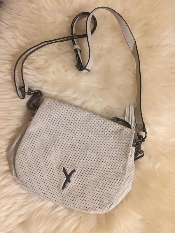 Чудова сумочка на плече. Довжина 23 см, ширина 15 см, ремінь регулюється на потрібну довжину. Є плямка від тонального крему ( на фото) , дуже малопомітна. Надішлю будь якою поштою.