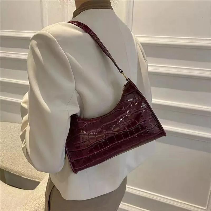 🔶️ Трендова малинова сумочка Багет 🔶️ 🔸️ PU глянцевая кожа с тиснением 🔸️ шириной 24 × вис 15,5 см 🔸️ ручка 53 см 🔸️ также в наличии шоколадные, черные, серые, белые, бежевые, песочные, зеленые ⠀