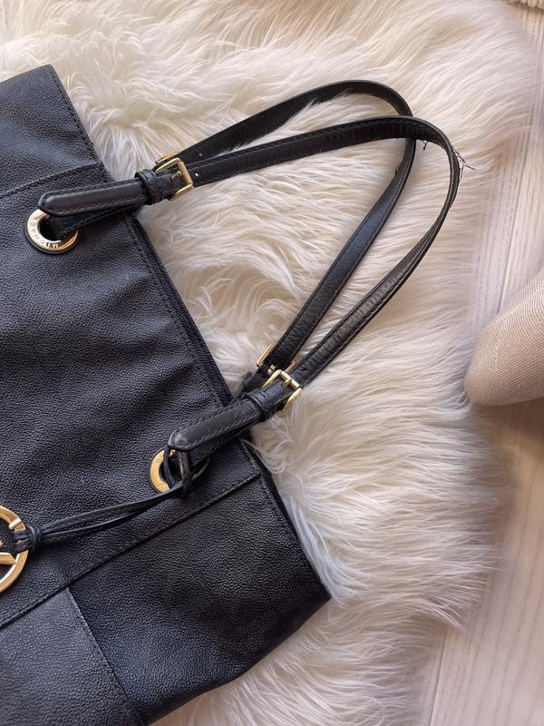 Дуже крута і містка сумка знаменитого бренду. Як ви можете побачити на фото є 2 відділення з боків, усередині є відділення на замку посередині, також по 2-3 кишені з кожного боку сумки всередині, і є ще одна маленька кишеня на змійці. Купувалась у мілані, носила 2-3 роки. Сумка не вбивається якщо можна так висловиться. Є дефекти, подерта золота емблема. За додаткові фотографії - звертайтеся. відповідаю дуже швидко