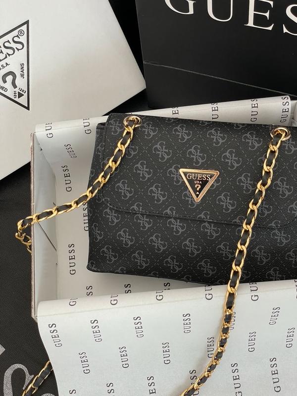 👜 Guess Amara Black (Арт: 17015) 💵 Цена: 1590 грн 📐 Размер: 25 х 17 х 7 см 🧵 Материал: Эко Кожа 🔎 Описание: Сумка изготовлена из эко кожи с фирменным принтом. Внутри одно сплошное отделение, есть небольшой кармашек на молнии. Подкладка у сумки из текстиля с фирменным рисунком. Закрывается сумка на двух магнитах с двух сторон. Ремешок на золотистой цепочке с вплетенным ремнем из эко-кожи. Комплектуется в брендированной коробке и бумаге (за дополнительную плату можно приобрести документы, пакет, пыльник).