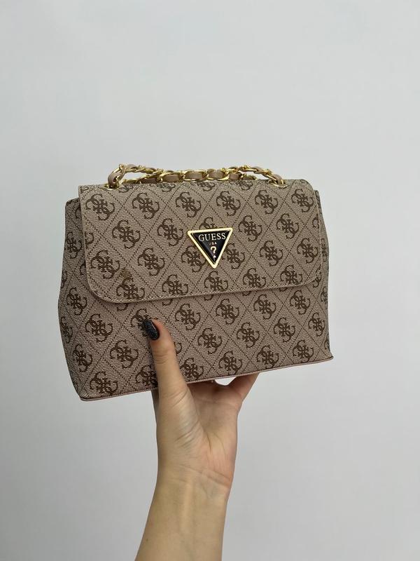 👜 Guess Amara Beige (Арт: 17046) 💵 Цена: 1590 грн 📐 Размер: 25 х 17 х 7 см 🧵 Материал: Эко Кожа 🔎 Описание: Сумка изготовлена из эко кожи с фирменным принтом. Внутри одно сплошное отделение, есть небольшой кармашек на молнии. Подкладка у сумки из текстиля с фирменным рисунком. Закрывается сумка на двух магнитах с двух сторон. Ремешок на золотистой цепочке с вплетенным ремнем из эко-кожи. Комплектуется в брендированной коробке и бумаге (за дополнительную плату можно приобрести документы, пакет, пыльник).