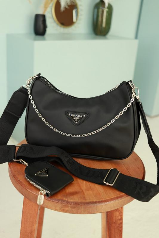 Сумка женская Prada в черном цвете Отличное качество код черный 10006-1 • Цвет фурнитуры серебро • Материал еко кожа + нейлон • Подкладка • Размер сумки 27 х 17 х 6.5 см • Мини кошелек 9 х 6 х 3 • Плечевой ремень 120 см