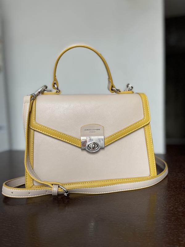 Бежева сумка з жовтими елементами доповнить будь-який класичний або смарт-кежуал образ. Є довга ручка, яка легко знімається. Сумка дуже вмістка. Параметри: Довжина - 24 см Висота - 17 см Ширина - 10 см Сумку брала із собою всього декілька разів.