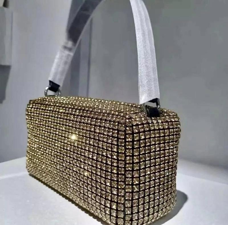 Сумка в камінцях Wang Код 7784 Кольори : чорна, зелена, золота На короткій ручці букви Wang. Довгий ланцюжок в комплекті не йде. В комплекті запасні стразы. Великий відділ на блискавці, є два маленькі відділи для карток. Розміри 19*9*8см Країна виробник Китай🇨🇳