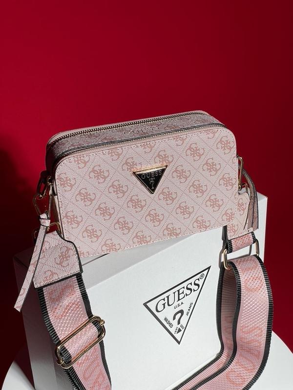 👜 Guess Zippy Snapshot Pink (Арт: 17067) 💵 Ціна: 1550 грн 📐 Розмір: 21 х 12.5 х 7 см 🧵 Матеріал: Еко Шкіра 🔎 Опис: Сумка виготовлена з еко шкіри з фірмовим принтом. Усередині два відділення, на блискавках. Підкладка всередині сумки з чорної еко шкіри. Ремінець текстильний з фірмовими написами, регулюється від 63 до 105 сантиметрів у довжину. Комплектується у брендованій коробці та папері (за додаткову плату можна придбати документи, пильовик та фірмовий пакет).