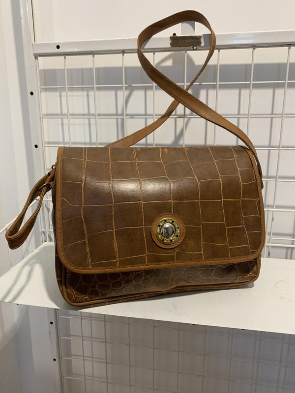 Сумка через плечо, очень стильно и дорого смотрится, содержимое, застегивается на кнопку и замочек, имеет два отделения. Длина всего ремешка 110 см но можно сделать меньше, регулируется. Стан- б.у, все цельные, замки работают, кнопка также, трещинок или повреждений других нет, но есть местами сама краска потерлась, как то рисунок под крокодила местами стерся, на фото показала, при носке не бросается в глаза. Из-за этого такая цена. А так сумка супер