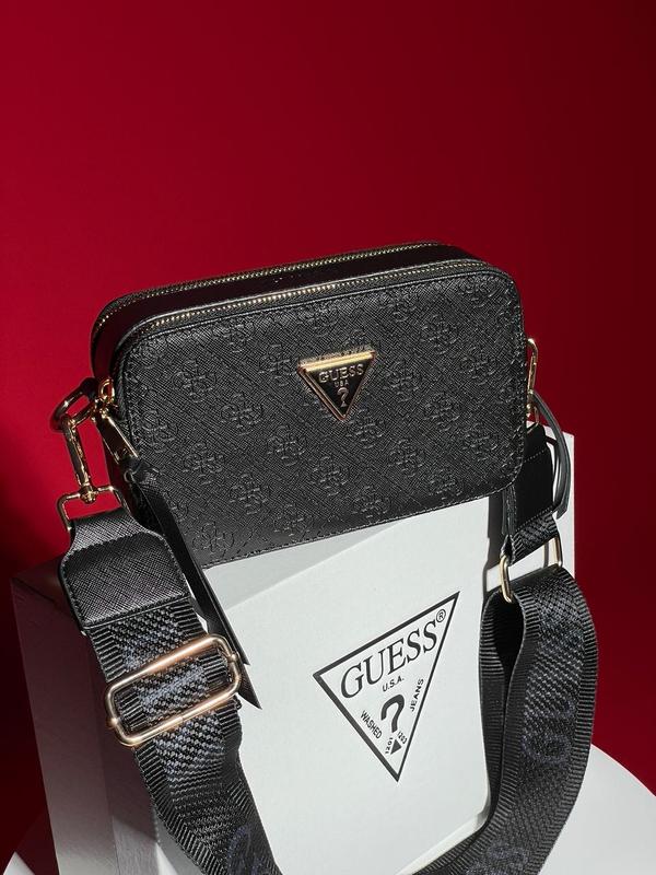👜 Guess Zippy Snapshot Black/Gold (Арт: 17035) 📐 Размер: 21 х 12.5 х 7 см 🧵 Материал: Эко Кожа 🔎 Описание: Сумка изготовлена из эко кожи с фирменным принтом. Внутри два отделения, на молниях. Подкладка внутри сумки из черной эко кожи. Ремешок текстильный с фирменными надписями, регулируется от 63 до 105 сантиметров в длину. Комплектуется в брендированной коробке и бумаге (за дополнительную плату можно приобрести документы, пыльник и фирменный пакет).