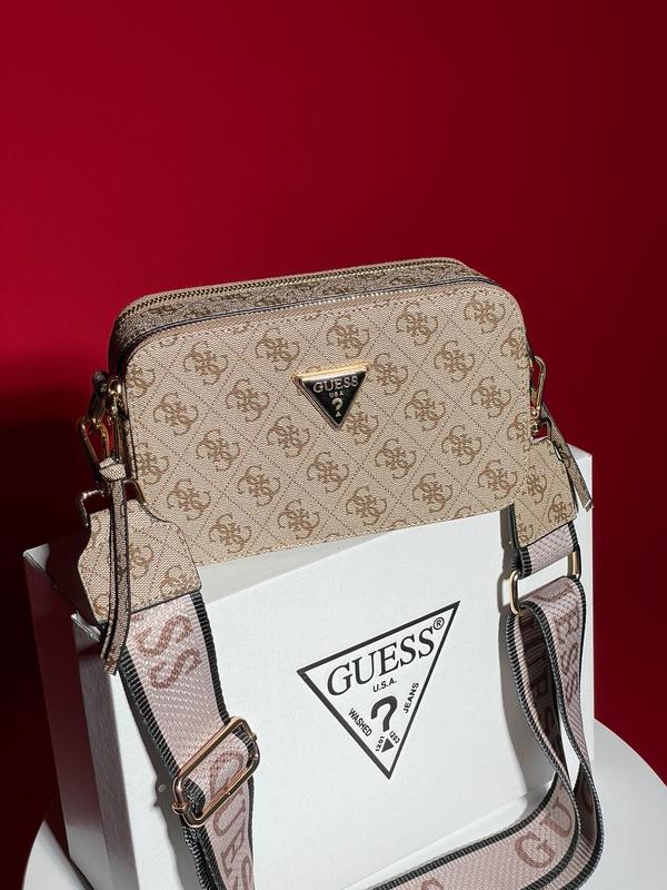 👜 Guess Zippy Snapshot Gold (Арт: 17034) 📐 Размер: 21 х 12.5 х 7 см 🧵 Материал: Эко Кожа 🔎 Описание: Сумка изготовлена из эко кожи с фирменным принтом. Внутри два отделения, на молниях. Подкладка внутри сумки из черной эко кожи. Ремешок текстильный с фирменными надписями, регулируется от 63 до 105 сантиметров в длину. Комплектуется в брендированной коробке и бумаге (за дополнительную плату можно приобрести документы, пыльник и фирменный пакет).