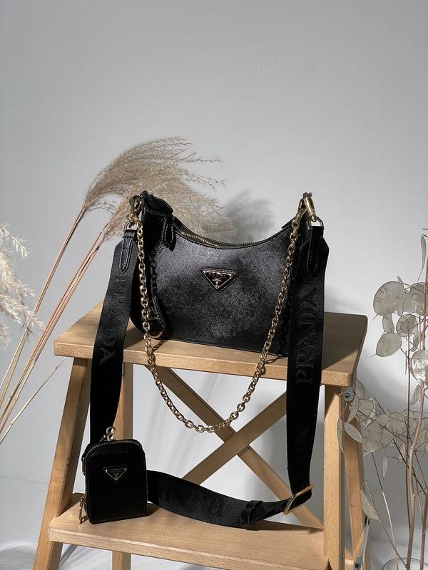👜 Prada Re-Edition 2005 Black Saffiano Leather Bag (Арт: 05041) 📐 Размер: 28 х 16 х 7 см 🧵 Материал: Эко Кожа 🔎 Описание: Сумка выполнена из черной эко кожи. Внутри одно сплошное отделение с брендовым металлическим логотипом. Подкладка внутри сумки из черного текстиля с фирменными надписями. Ремешок из качественного текстиля, с фирменными надписями, регулируемой длины. На ремешке есть также небольшой кармашек для мелочи. Также есть золотая цепочка на карабинах. Комплектуется в брендированной коробке и бумаге (за дополнительную плату можно приобрести фирменный пакет, пыльник и документы).