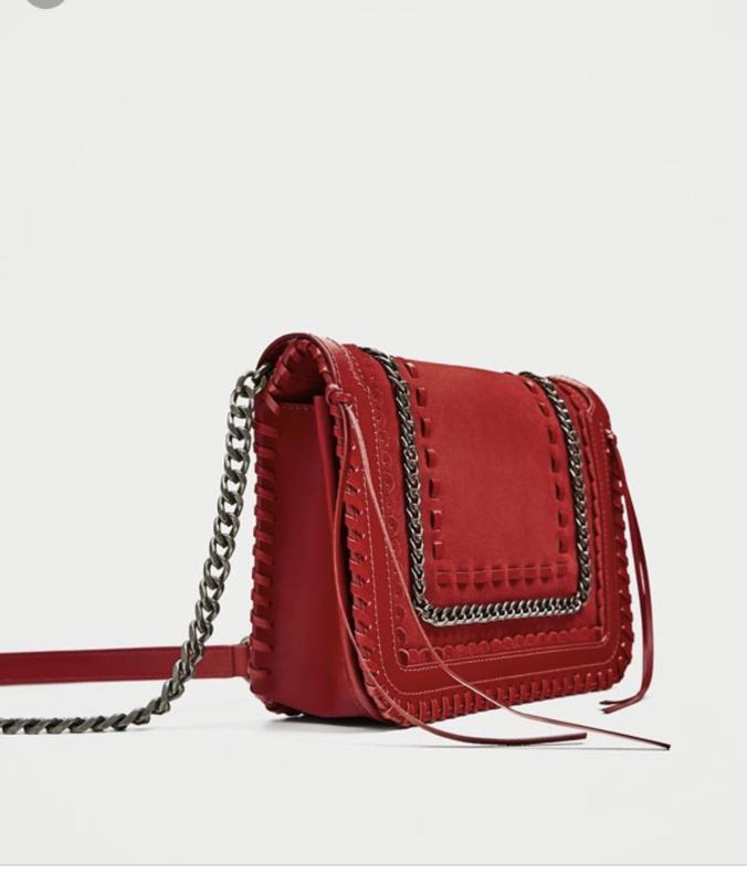 Сумка Zara, красного цвета. Натуральный замш и кожа. Cостояние идеальнoe