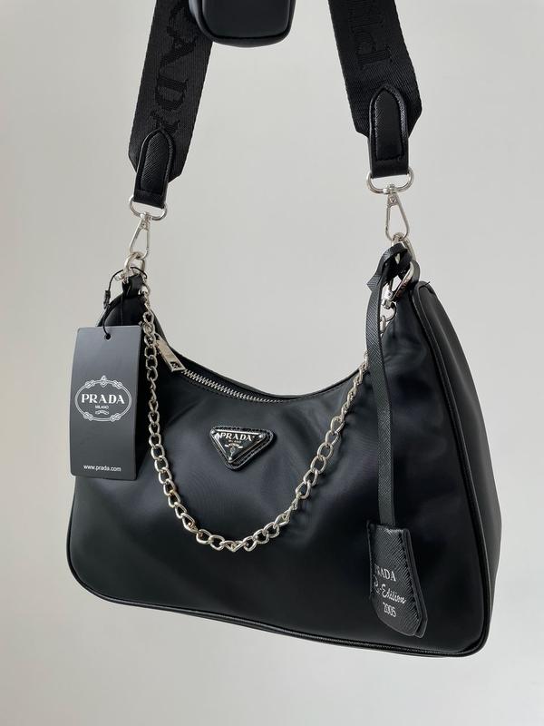 👜 Prada Big Re-Edition 2005 Black (Арт: 05020) 📐 Размер: 28 х 16 х 7 см 🧵 Материал: Нейлон 🔎 Описание: Сумка выполнена из приятного на ощупь нейлона. Внутри одно сплошное отделение, застежка – на молнии, есть небольшой кармашек. Подкладка у сумки черная текстильная, с фирменными логотипами. Ремешок регулируемой длины, на нем также есть небольшой кармашек. Металлическая цепочка также можно использовать как ремешок. Комплектуется в брендированной коробке и бумаге (за дополнительную плату можно приобрести фирменный пакет, пыльник и документы).