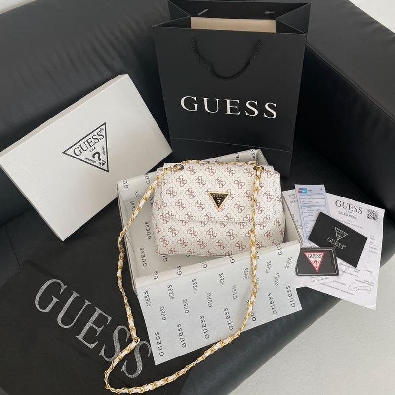 👜 Guess Amara White (Арт: 17014)💋 💵 1790 грн 📐 Размер: 25 х 17 х 7 см 🧵 Материал: Эко Кожа 🔎 Описание: Сумка изготовлена из эко кожи с фирменным принтом. Внутри одно сплошное отделение, есть небольшой кармашек на молнии. Подкладка у сумки из текстиля с фирменным рисунком. Закрывается сумка на двух магнитах с двух сторон. Ремешок на золотистой цепочке с вплетенным ремнем из эко-кожи. Комплектуется в брендированной коробке и бумаге (за дополнительную плату можно приобрести документы, пакет, пыльник).