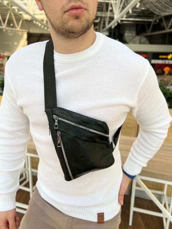 Натуральна шкіра 4 зовнішніх кишені на замку 24x17 см