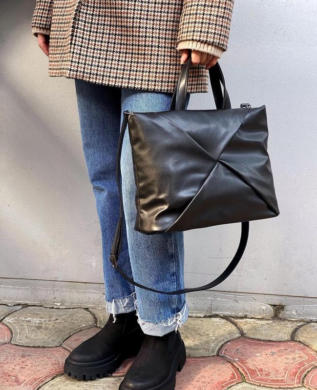 Модель 0046 Цена: 879 грн ▪️стильная ▪️не обычная😍 ▪️среднего размера ▪️удобная ▪️1 отделение ▪️есть дополнительные карманы ▪️на подкладке ▪️длинный съемный ремешок ▪️материал: эко-кожа премиум ▪️производитель: Украина💙💛 Размер: 31×24×12 см Цвет: черный, черный+коричневый, светлый беж, темный беж+коричневый