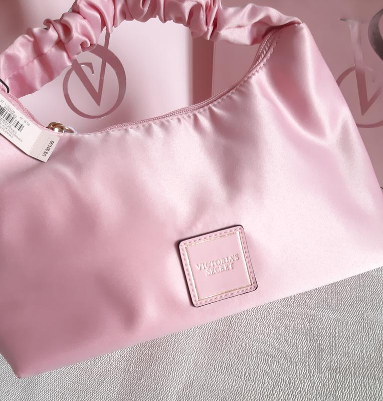 Сумка Victoria’s Secret. Стильная сумка, которая отлично подойдет как для повседневной носки, так и для праздничных событий. Классная и кокетливая розовая сумочка на молнии с гладкой атласной отделкой и мятой ручкой. Достаточно вместительная для небольших повседневных вещей первой необходимости, с большим количеством карманов и отделений. Логотип бренда спереди на сумке. Размер: 28,5* 15* 10 см.