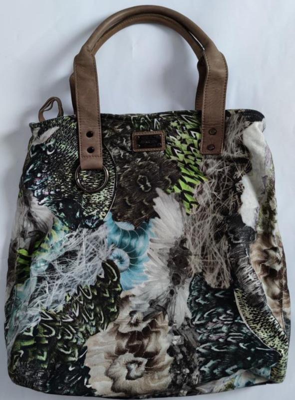 Сумка Marc Cain. Основная часть сумки-плотный текстиль, ручки -кожа.